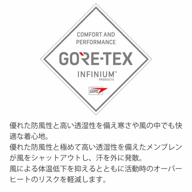 WINDSTOPPER? プロダクト BY GORE?TEX LABS ゴアテックスの中でも透湿性や防風性に特化し、着心地と柔らかさ、十分な防水性を有しています |