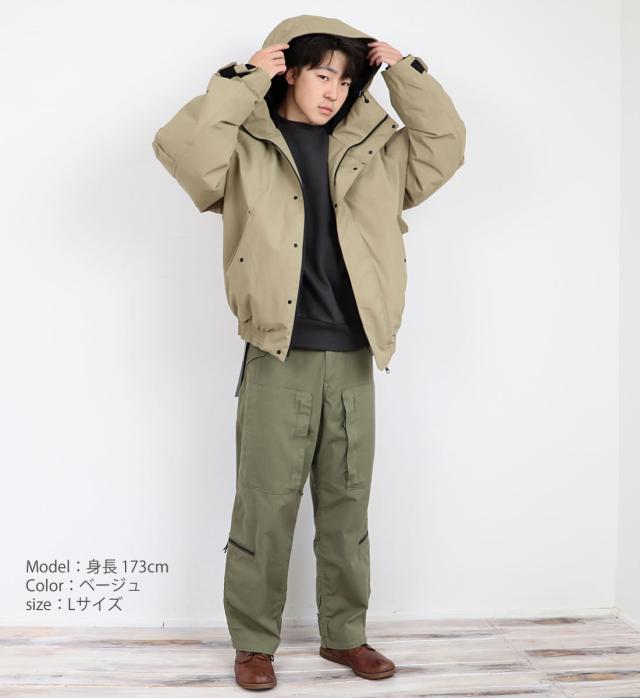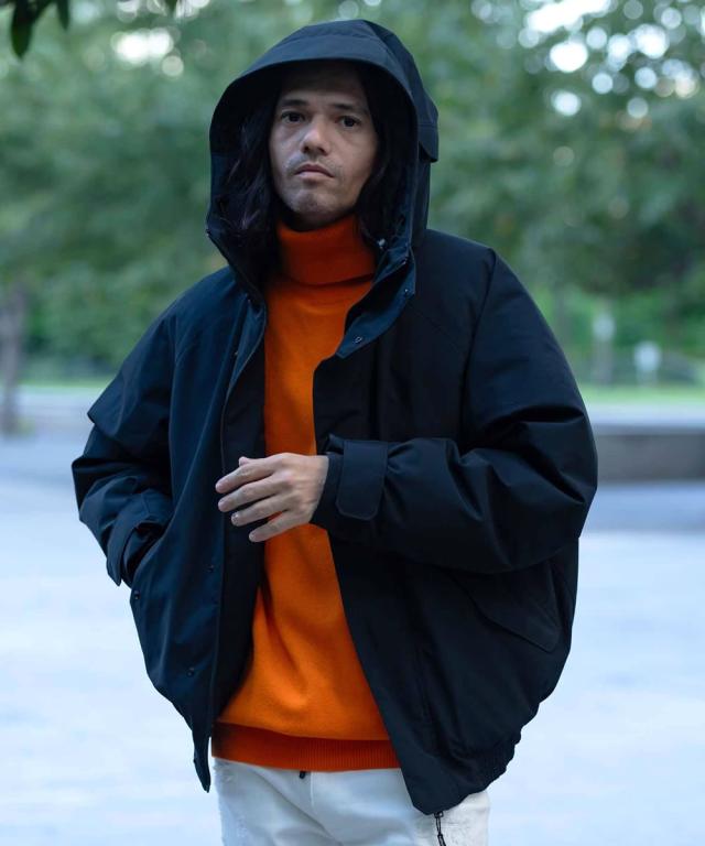 一般的なボマージャケットにはないフード、リストゲーターをプラスすることで、より機能的でシチュエーションを選ばないものに仕上がっています。