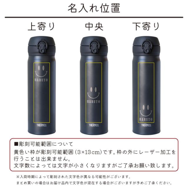 - サーモスの製品ということで安心です。 名入れをしてもらったのですが、仕上がりもよかったです。 選んだフォントが、パッと見た感じメーカーロゴのようにもみえ、大きく名前が書いてあってもあまり恥ずかしくない...