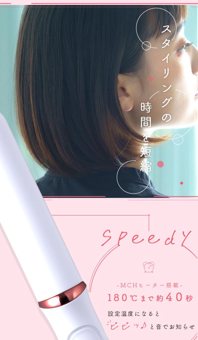 180℃まで約40秒で上昇するヒーターを搭載。毎日のスタイリングの待ち時間を短縮できます。 カーブしたボディを使って、毛先のカールアレンジも可能!