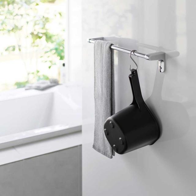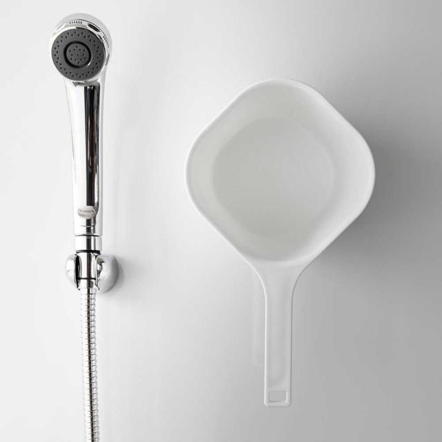 使った後の置き場所に困る、手おけ。浴室床や浴槽のふちに置いたままにしておくと、汚れやヌメリが気になる!そんな時はマグネットで浴室壁面に浮かせて収納できる、画期的な手おけが便利です。手おけの底面についたマグネットで壁に簡単に、ピタッ!とくっつきます。適度な磁力だから、しっかりとくっつきながらも、使う時は簡単に取り外せます。水切れも良く、浴室のお掃除もラクに。マグネットは錆や色移りの心配のない埋め込み式なので安心してお使いいただけます。また、マグネットが使えない浴室のお宅でも大丈夫!手おけのハンドルにホールがある事で、タオルバーや扉のバーに引っ掛け、浮かせて収納することができます。