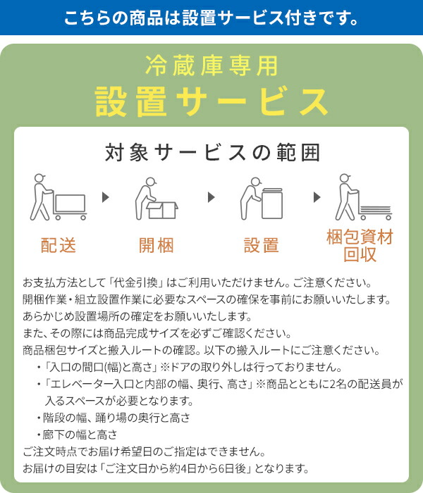 | 商品説明 | ●電源:AC100V(50/60Hz) ●年間消費電力量(50/60Hz):299kwh/年 ●年間電気代目安:9,270円 ※電気料金目安単価1kWhあたり31円で算出 ●定格内容積:236L ・冷蔵容量146L ・冷凍容量90L ●運転音:26dB静音設計 ●冷媒:R600ノンフロン設計 ●省エネ達成率:110% ●横幅47.5cmのスリム設計 ●霜取り不要のファン式タイプ ●90L大容量ボトムフリーザー ●明るく見やすいLED庫内灯 ●メーカー保証:1年 ※組立設置サービスに関する共通の注意事項 ・お支払方法として「代金引換」はご利用いただけません。ご注意ください。 ・開梱作業・組立設置作業に必要なスペースの確保を事前にお願いいたします。 ・あらかじめ設置場所の確定をお願いいたします。また、その際には商品完成サイズを必ずご確認ください。 ・商品梱包サイズと搬入ルートの確認。以下の搬入ルートにご注意ください。 ・「入口の間口(幅)と高さ」※ドアの取り外しは行っておりません。 ・「エレベーター入口と内部の幅、奥行、高さ」※商品とともに2名の配送員が入るスペースが必要となります ・ご注文時点でお届け希望日のご指定はできません。 ・お届けの目安は「ご注文日から約4日から6日後」となります。 ・ご注文日の1-2営業日以内に当店より出荷手配をさせて頂きます。その後、さらに1-2営業日以内に運送会社のアートセッティングデリバリーより配達予定についてお電話を差し上げますので、その際に配送日時の調整をお願いいたします。 ・ ※土、日、祝日のご注文は翌営業日のご注文とさせていただきます。 ・ ※年末年始、新生活シーズン、お盆、ゴールデンウィークの期間、また大口のご注文、およびご注文内容に不明な点がある場合など、ご希望日にお届けできない場合があります。 ・配送時に下記が判明した場合、別途追加費用の請求もしくは実費相当額のキャンセル料をお客様にご負担いただきますのでご注意ください。 ・小型トラックが通行できない道路に面している住宅にお届けの場合 ・駐車場など一時停止できる環境がない住宅にお届けの場合 ・窓からの搬入およびつり上げ作業が必要な環境の住宅にお届けの場合 ・組立設置場所の建物管理上の制約等により作業スケジュールおよび作業内容が変更となる場合 ・申込み時にお伝えいただいた内容と現況が異なることにより作業に大幅な遅延が生じた場合 ・搬入経路や組立作業スペースの事情により再度のお届け、作業が必要となった場合 |