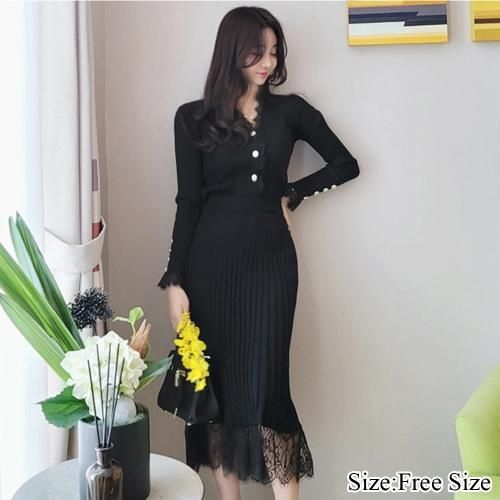 裾レースのリブニットセットアップドレス(キャバドレス・CABARETDRESS)。