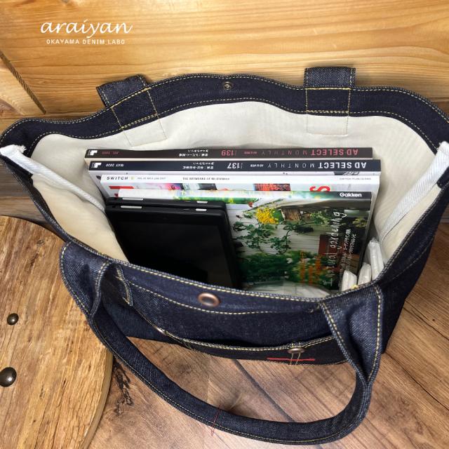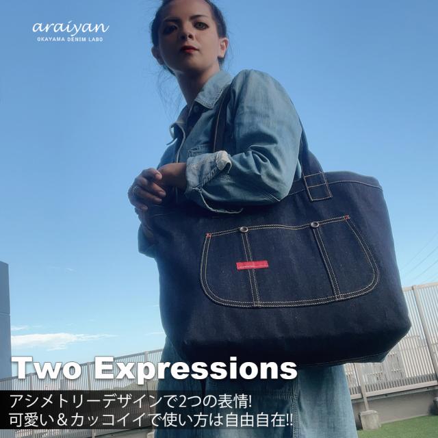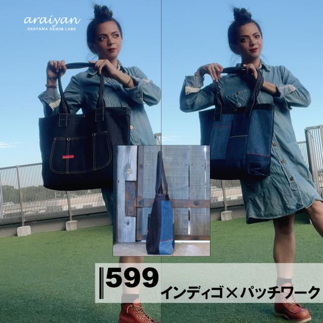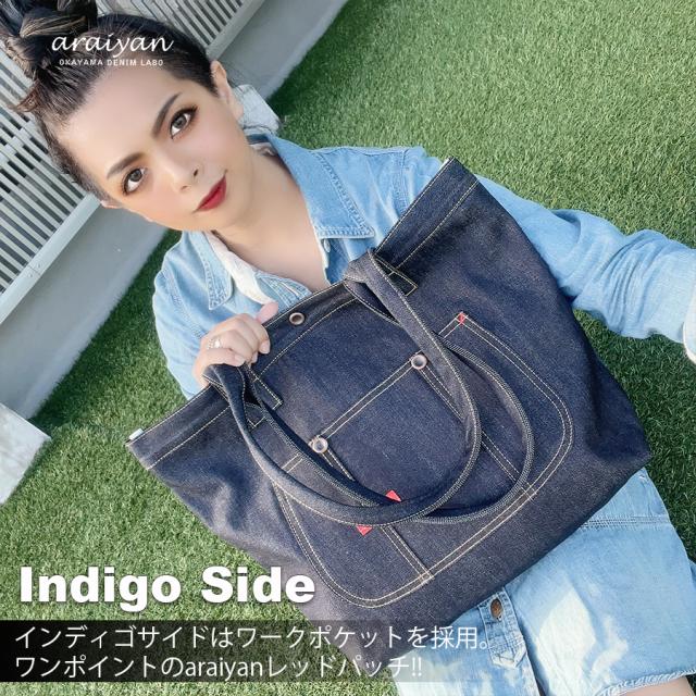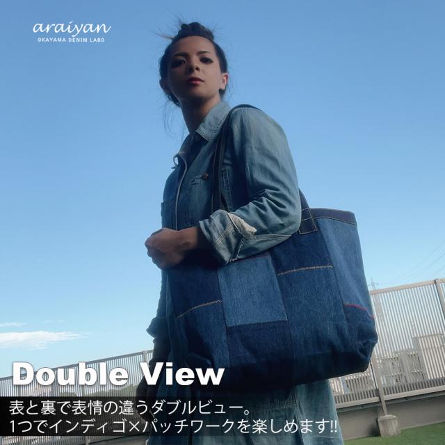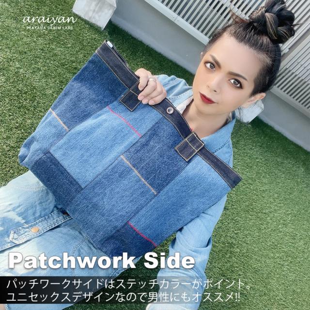 【araiyan】 アライヤン 岡山デニム リメイクデニムバッグ トートバッグ デニムバッグ ファッション小物 リメイクバッグ ジーンズ素材 手提げ デニム地 日本製 鞄 かばん デニム雑貨 リバーシブル パッチワーク トート バッグ 収納 コットン100% AB17001 区分60S
