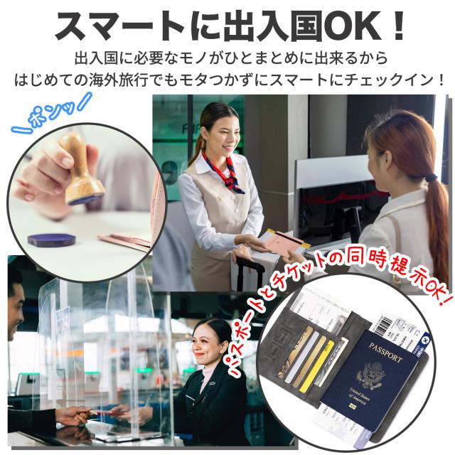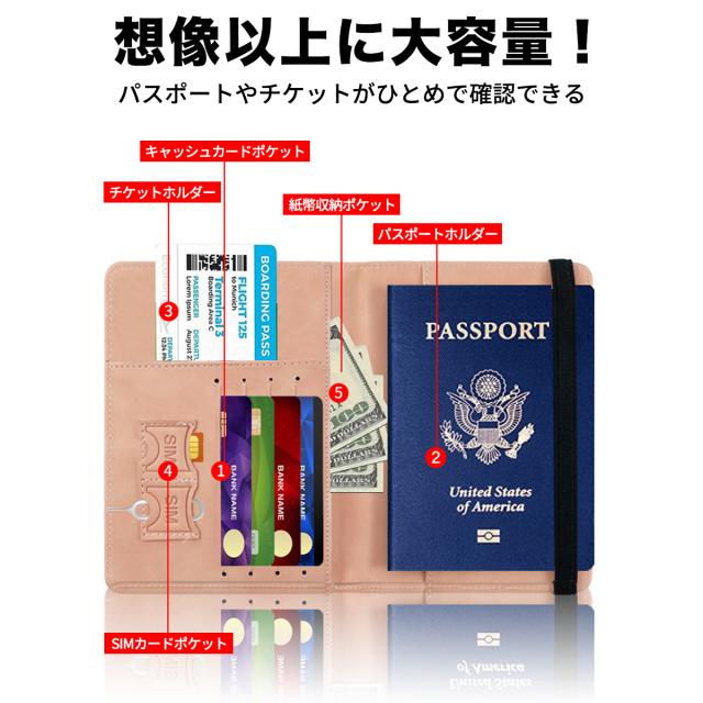 | チケットホルダー/SIMカードポケット/カードポケット×4/紙幣収納ポケット/パスポートホルダー |