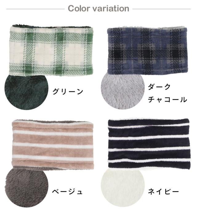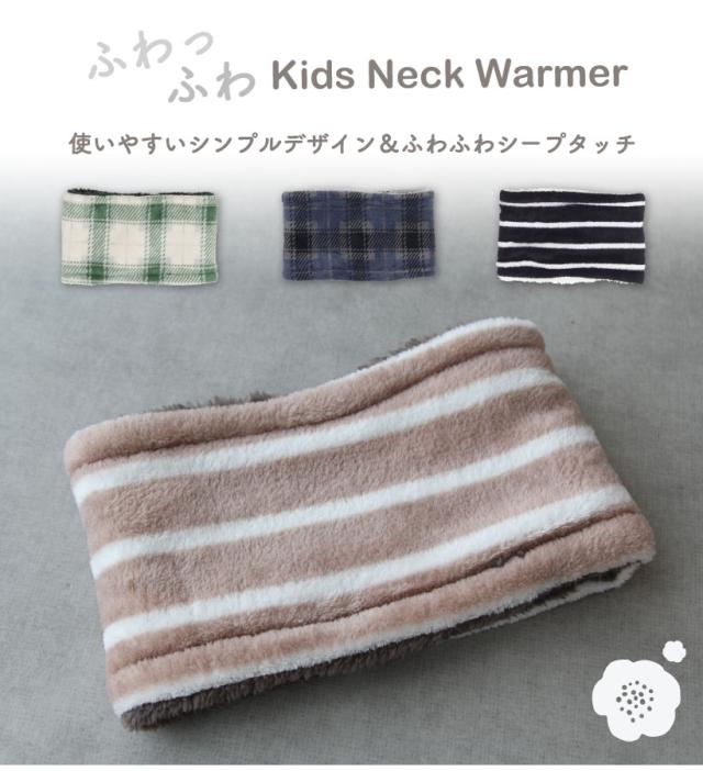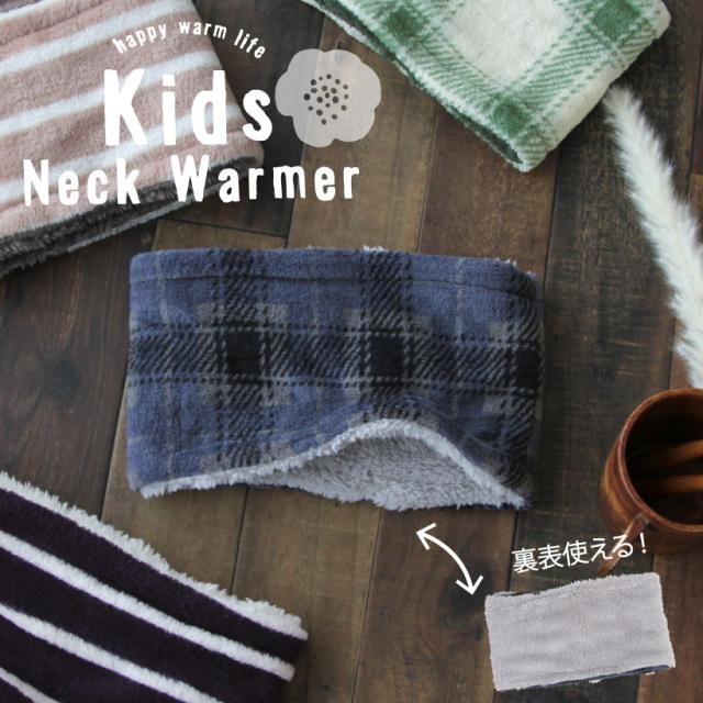 【メール便1枚のみ送料無料】キッズネックウォーマー【こども用】チェック ボーダー リバーシブル シンプル かわいい おしゃれ 通園 通学 プレゼント【N】【M】
