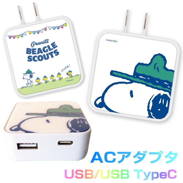 USB Type-C AC充電器 2ポート タイプC+タイプA コンセント用 スマホ充電 2ポート合計 最大出力3.4A TypeC 3A TypeA 2.4A スヌーピー ピーナッツ かわいい 充電器 ACアダプタ 携帯充電器