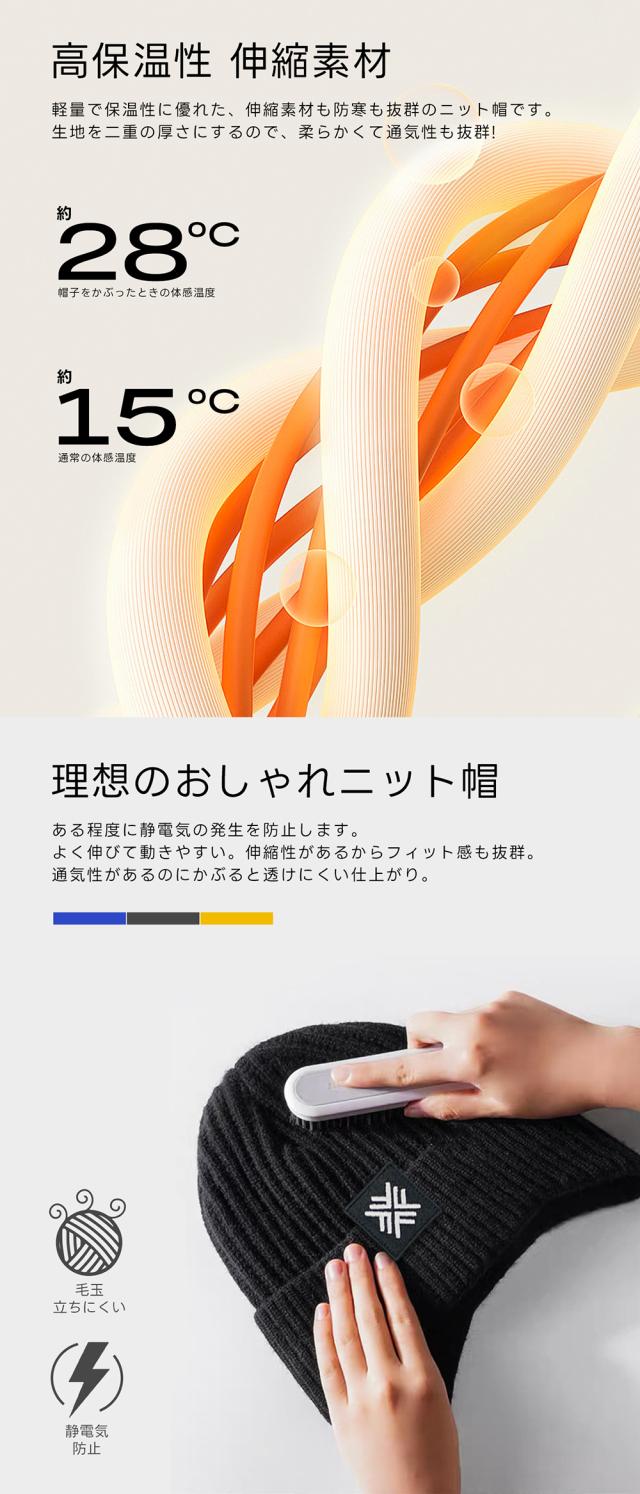 抗菌防臭機能を持つアクリル糸を使用。肌触りが良く、柔らかく軽い被り心地とフィット感の良さが特徴。