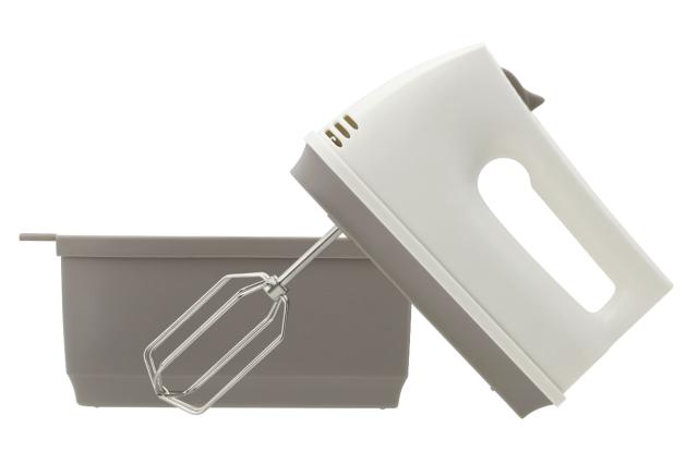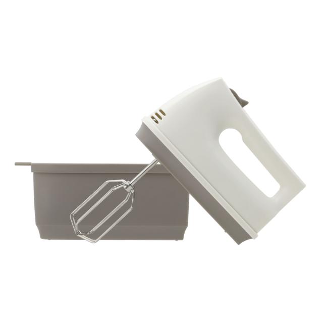 120Wのパワーとメリハリ5段階調節で、スピーディかつ滑らかな泡立てができるハンドミキサーです。機能性はもちろん、淡いグレーとホワイトの色味がおしゃれなレトロモダンデザインで、日々の料理やお菓子作りがもっと楽しくなりそうです。
