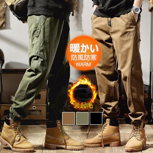 カーゴパンツ メンズ ミリタリー ワークパンツ マルチポケットズボン 裏起毛 防寒パンツ 裏ボア 暖パンツ 作業着 秋冬 防風 ア
