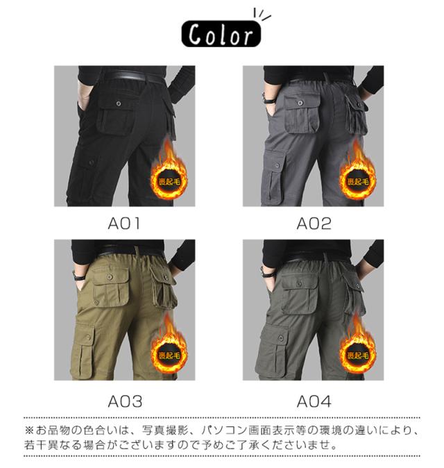 カーゴパンツ メンズ ミリタリー ワークパンツ マルチポケットズボン 裏起毛 防寒パンツ 裏ボア 暖パンツ 作業着 秋冬 防風 ア