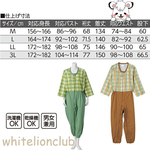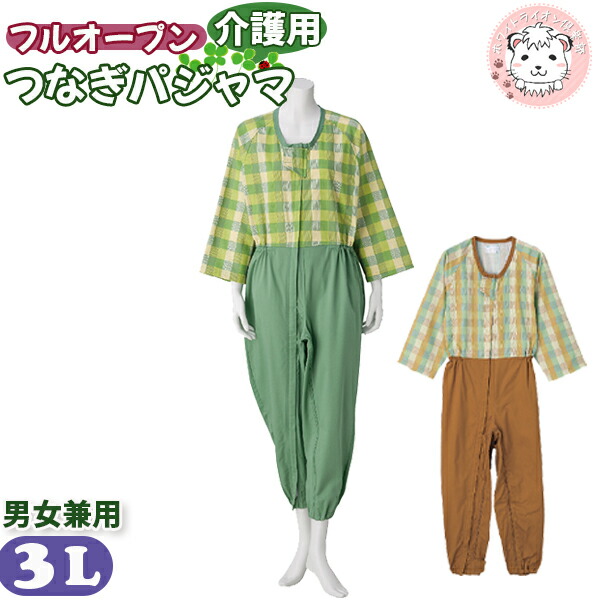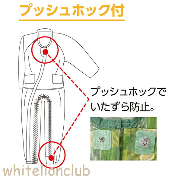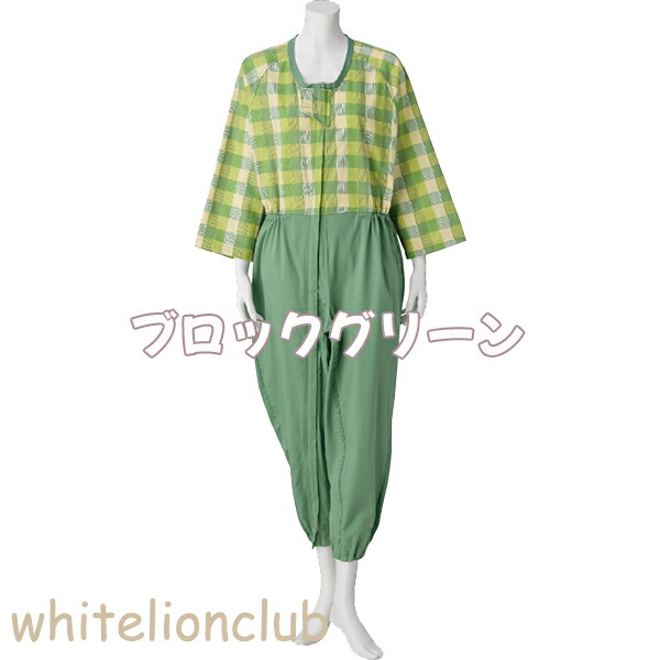 介護用 フルオープン つなぎパジャマ プッシュホック付 大きいサイズ 3L | 8分袖 介護 パジャマ ユニセックス 八分袖 いたずら防止 全開 前開き 介護用パジャマ