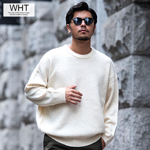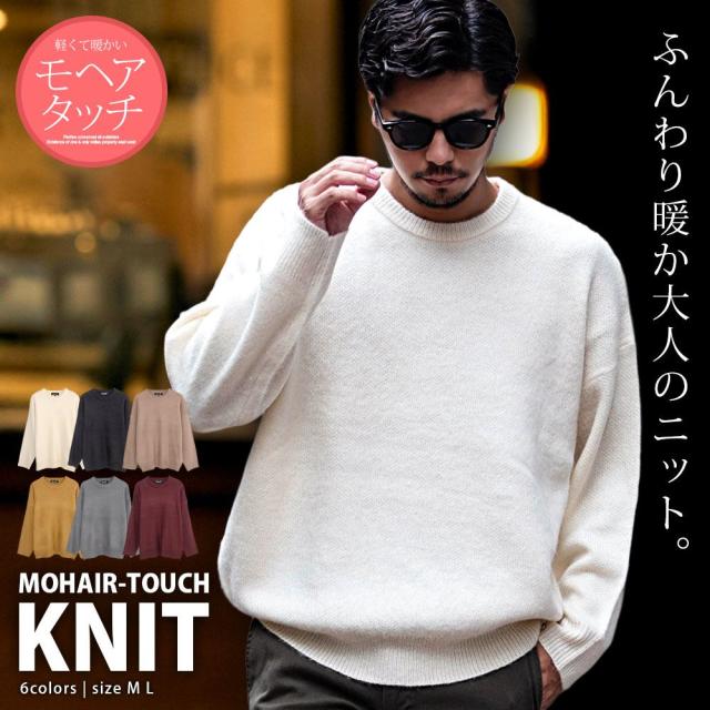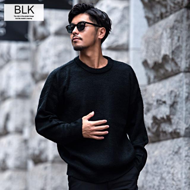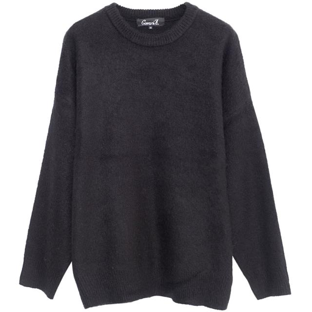 ニット メンズ セーター モヘア モヘヤ タッチ オーバーサイズ 大人 シンプル 無地 大人 トップス 大きいサイズ あったか 暖かい 防寒 クルーネック ブラック 黒 M L CavariA 20代 30代 40代 ユニセックス 男性 男 服 秋 冬 秋冬 秋服 ファッション [CAJP23-10]