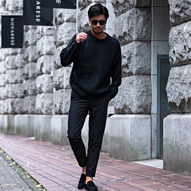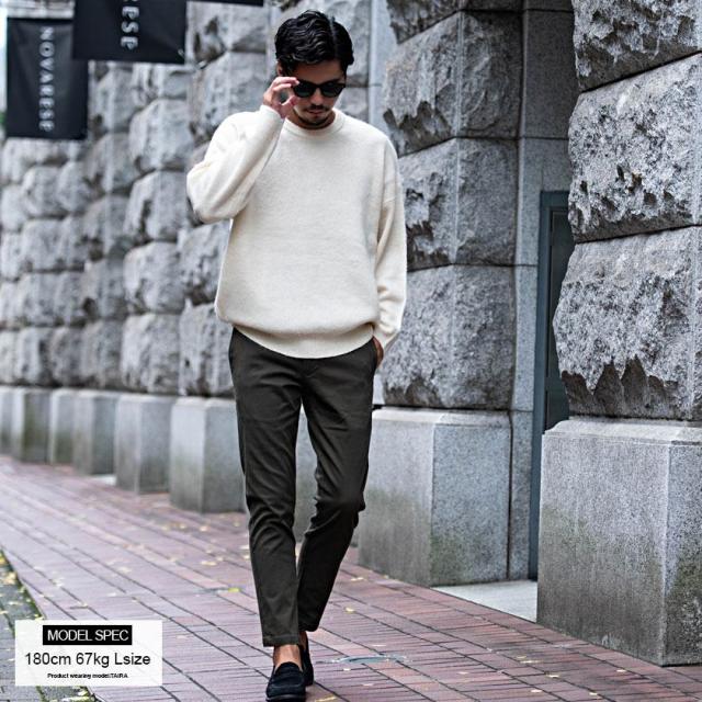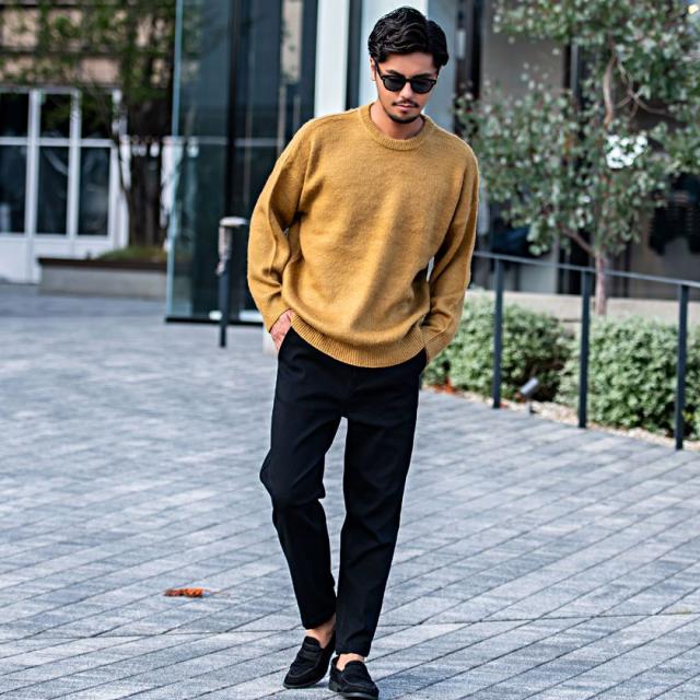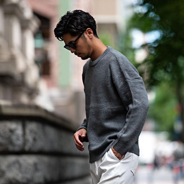首元は襟のあるシャツやハイネックとも重ね着しやすいクルーネック。