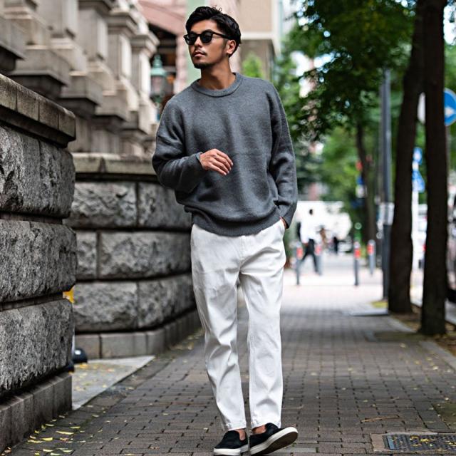 スキニーやデニムパンツなどと合わせるだけでイマドキ感のある着こなしが実現。