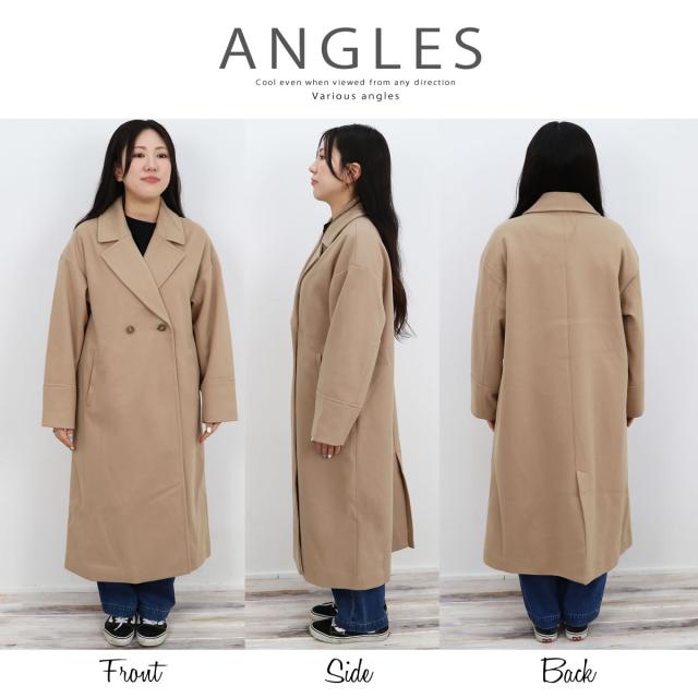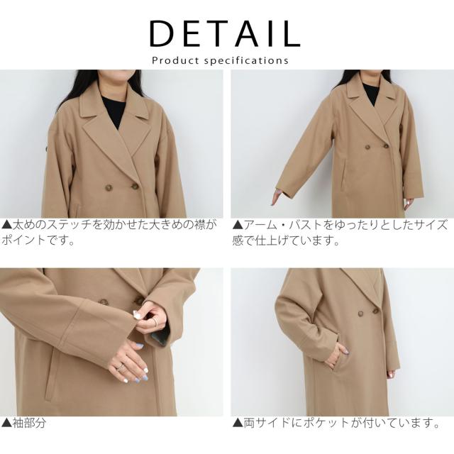 太めのステッチを効かせたビッグカラーのロング丈コートです。