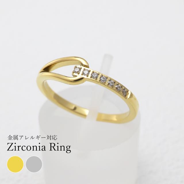 ベルトバックルのような、アシンメトリーデザインのリング、一方はドロップ型、一方はジルコニアを。女性らしい曲線美とジルコニアならではの輝きを放ちます。