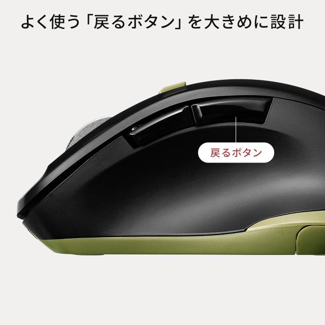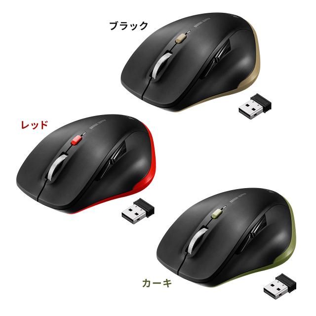 ワイヤレスマウス USB A 無線 小型 5ボタン 戻る進む アルミホイール 静音 ALUmini ブラック カーキ レッド[400-MAW159]