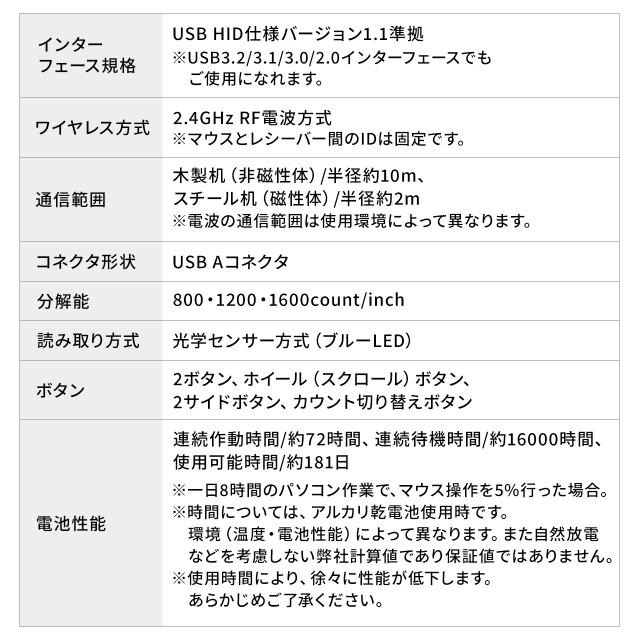 ●USB Aレシーバーを接続し、ケーブルレスで使用できるワイヤレスマウスです。