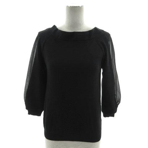 【中古】フレンチパヴェ FRENCH PAVE ニット 袖レース切替え 七分袖 ブラック 黒 レディース