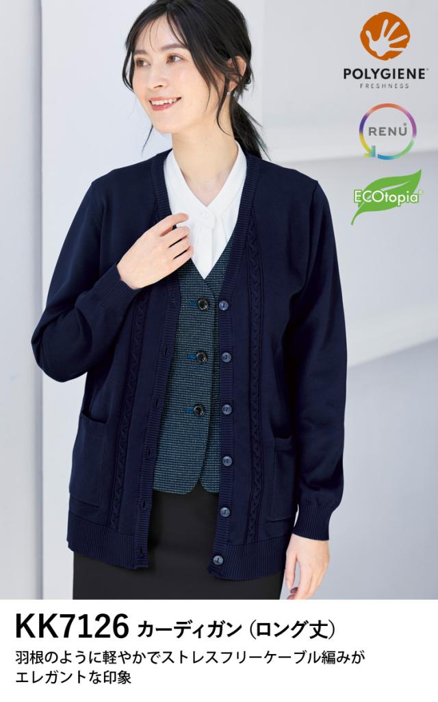 ボンマックス カーディガン(ロング丈)KK7126 S-L 中厚 ケーブル編み 軽量 ニット 家庭洗濯OK 抗菌防臭 エコ素材 オフィス 事務服 制服 BONOFFICE