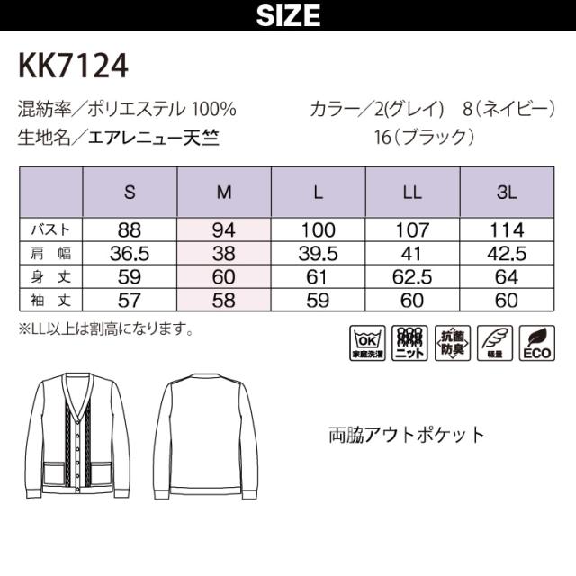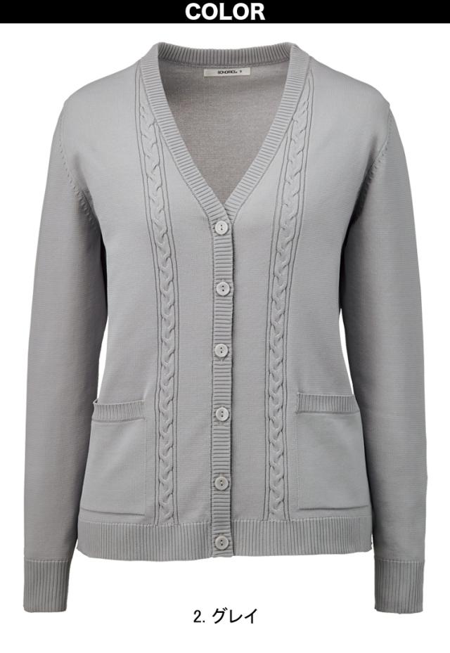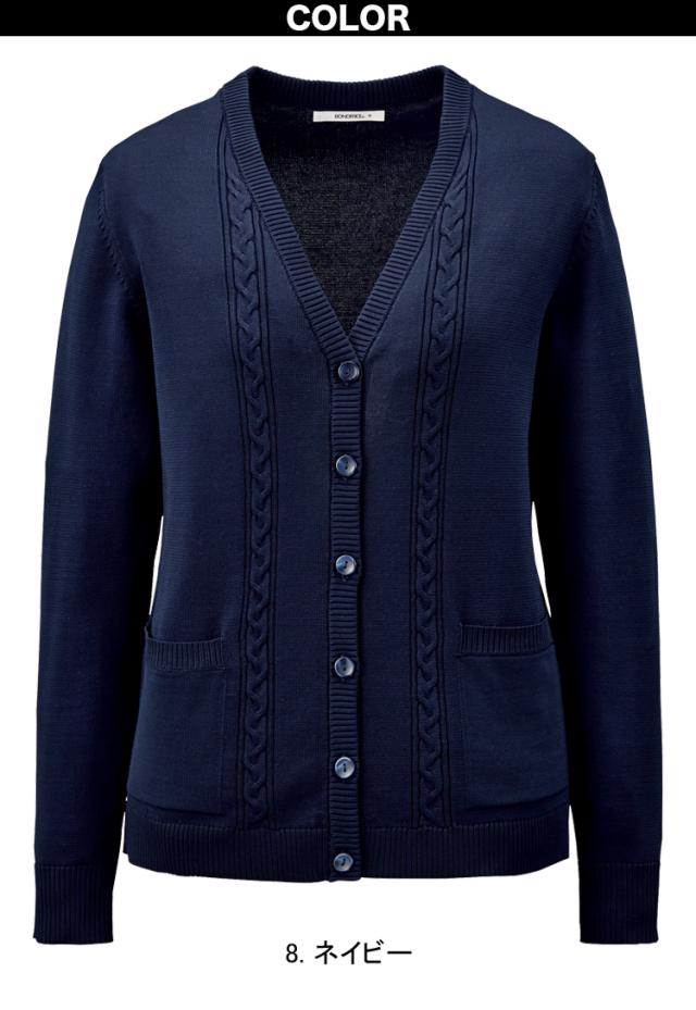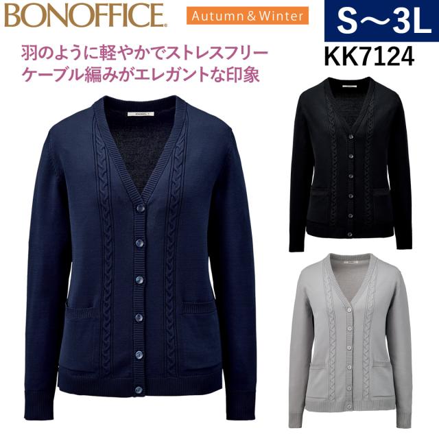 ボンマックス カーディガン KK7124 S-L レギュラー丈 中厚 ケーブル編み 軽量 ニット 家庭洗濯OK 抗菌防臭 エコ素材 オフィス 事務服 制服 BONOFFICE