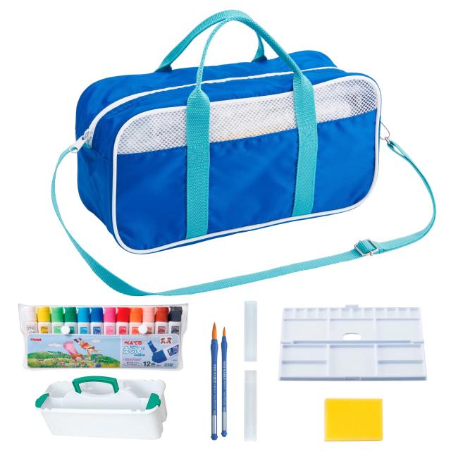 ◆商品名:ぺんてる 絵の具セット 画材セット ZST41-C ブルー<br>コンパクトに収納できるスケッチセットです。耐久性に優れ、水に強いナイロン製バッグ。