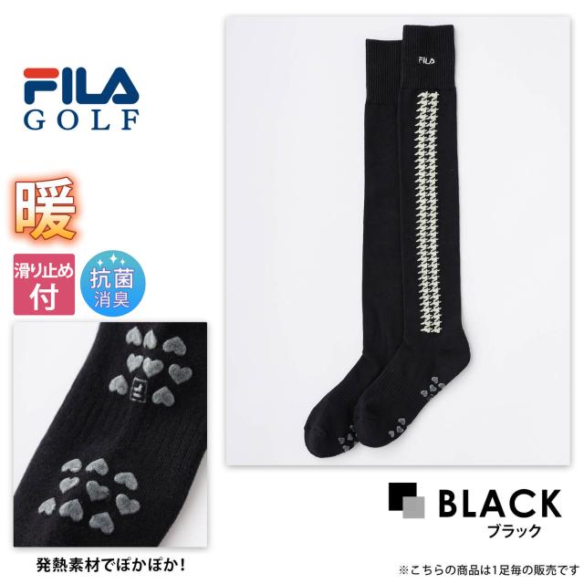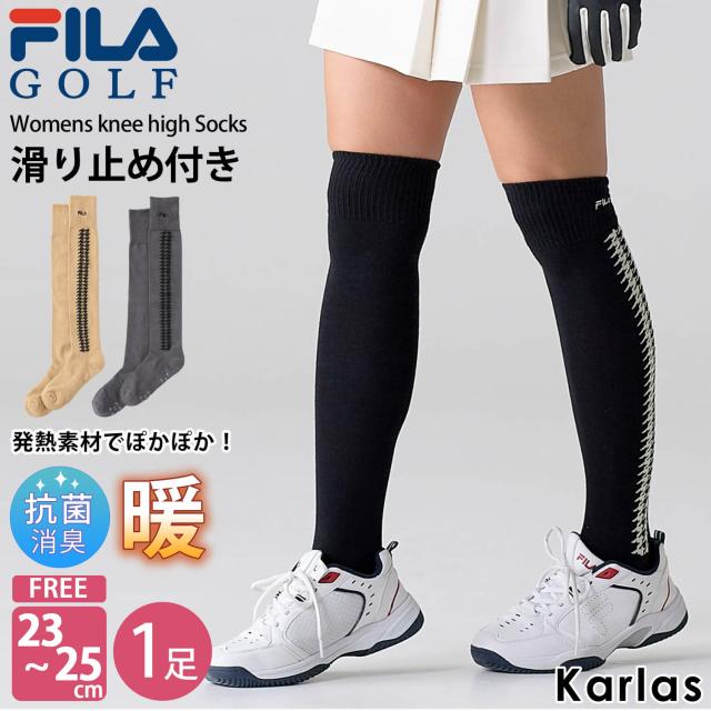 【30%OFF】FILA GOLF フィラゴルフ ゴルフウェア ソックス レディース 靴下 くつした ニーハイソックス 秋 冬 ブランド ひざ上丈 滑り止め付 持続消臭機能 発熱 ロゴ テニス スポーツ ランニング 23cm 24cm 25cm 黒 2023fw karlas