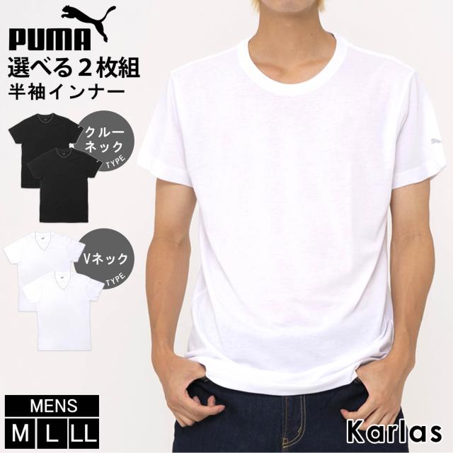 PUMA プーマ インナーウェア メンズ 半袖 下着 2枚組 クルーネック Vネック 肌着 スポーツ ブランド ロゴ 無地 プレゼント 男性下着 紳士 黒 白 2023fw karlas