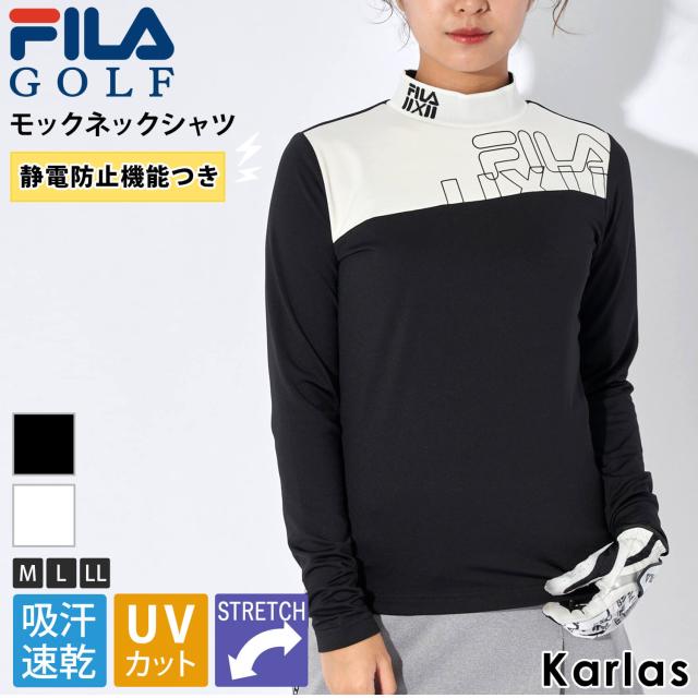 【30%OFF】FILA GOLF フィラゴルフ ゴルフウェア シャツ 長袖 レディース 裏起毛 モックネック ブランド 秋 冬 吸汗速乾 ドライ UVカット ストレッチ 保温 防寒 静電防止 スポーツ 黒 白 ロゴ M L LL 2023fw NEW LINE karlas