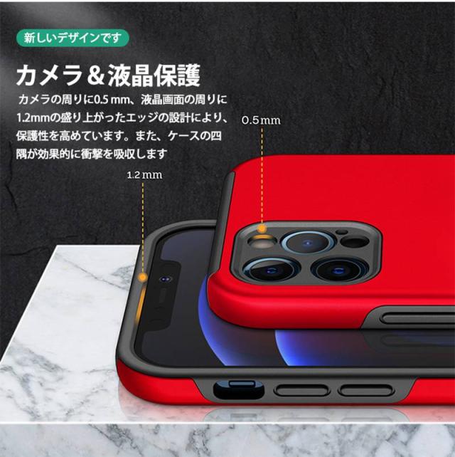 【スクリーン&カメラ保護】曲線に従って高低差を設計、スクリーンとカメラ周りのフチを高くすることで、傷から保護します。液晶画面より1.2mm高く、カメラレンズより0.5mm高く、机などの平面に置いても傷付く心配はない。り耐震性の高いTPUと頑丈なPCと組み合わせた二重構造で、非常に高い耐衝撃性を誇。また、カバーをつけたままボタン操作やコネクタへの接続も問題なく使えます。