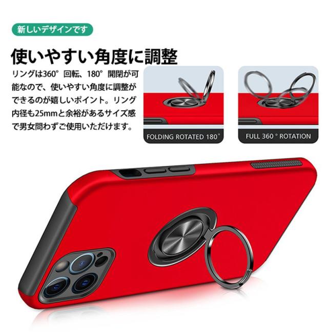 【スタンド機能】後ろで嵌め込み式リング付き、伝統的なリングと比較して、アイフォーンの水平安定性を維持することができます。リングは360度回転し。リングはケースにしっかり固定されていて、縦置き、横置きどんな角度でも固定できます。リングを立ててスタンドにしたりすることも可能です、持たず動画鑑賞などを楽しむことができます。一指着る式で、指がリングに通り抜け、片手で携帯を操作でき、落下防止します。ご注意:リング部分は磁石ですので、ワイヤレス充電できません。