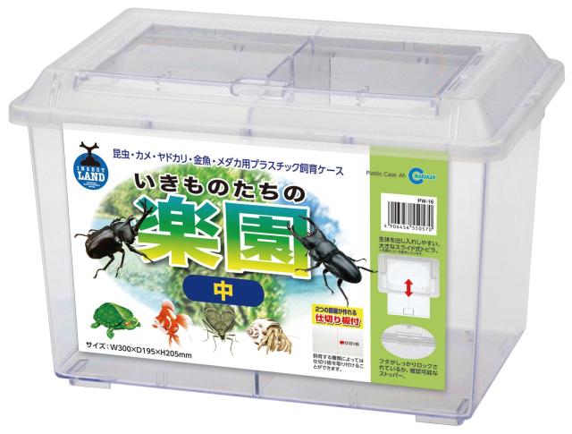 ◆商品名:インセクトランド プラケース いきものたちの楽園 中<br>商品紹介<br>いきものを出し入れしやすい、大きなスライド式トビラがついた飼育ケース。