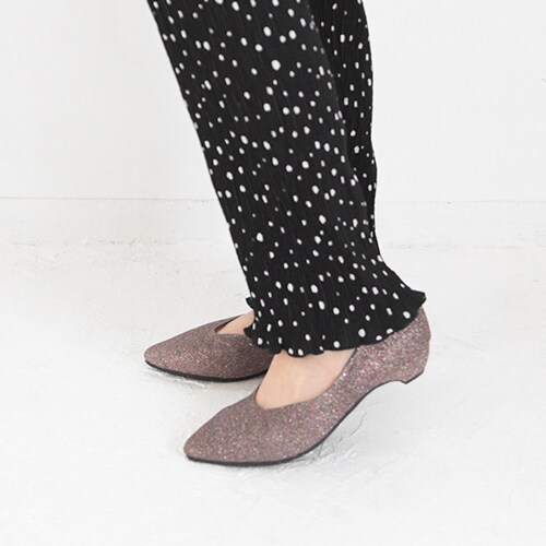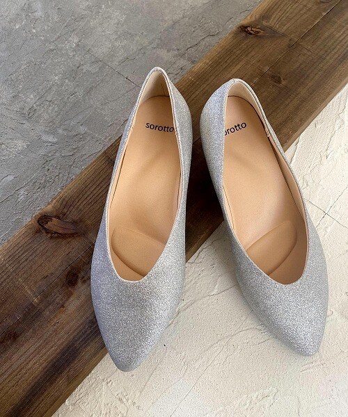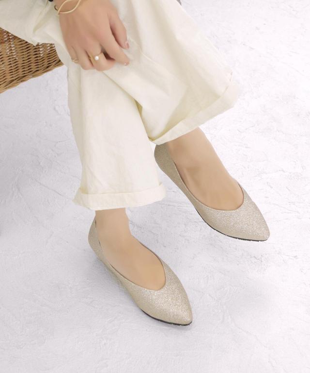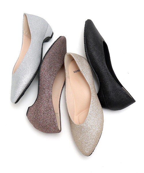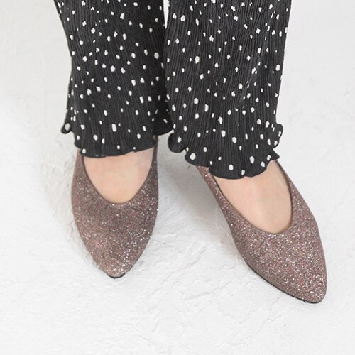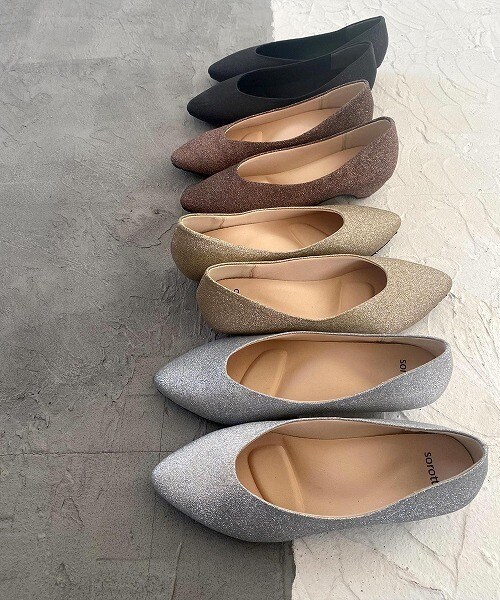 上品なグリッター素材で、派手になりすぎないけどアクセントになる大人可愛いパンプス。