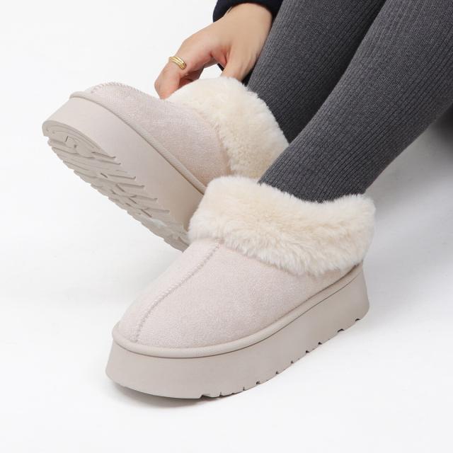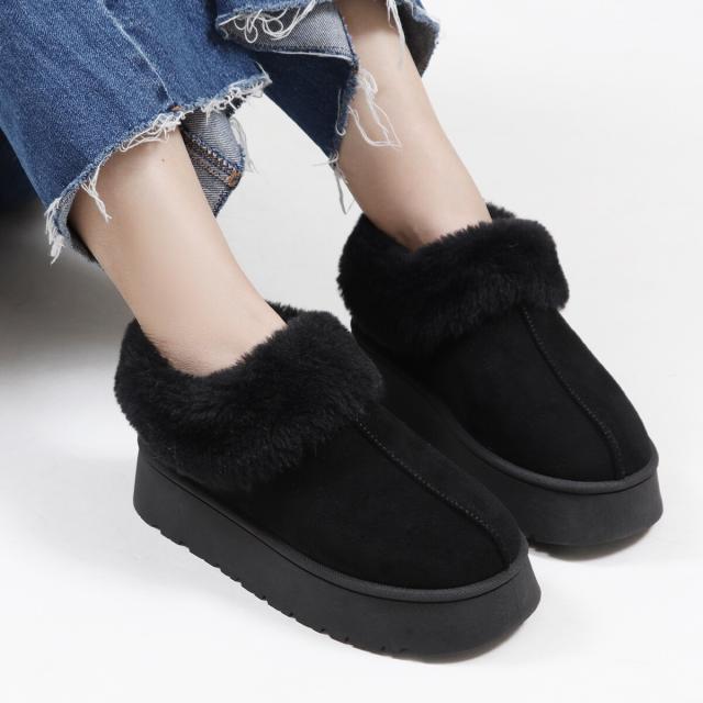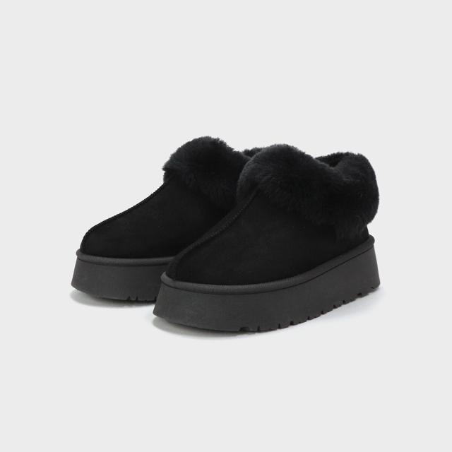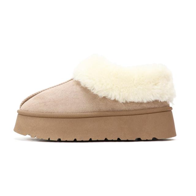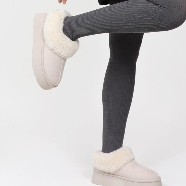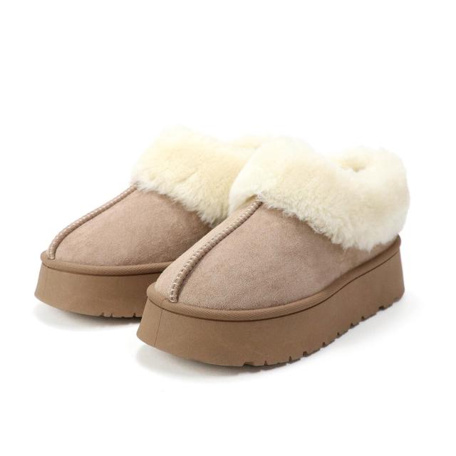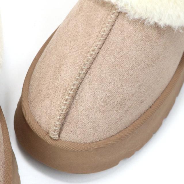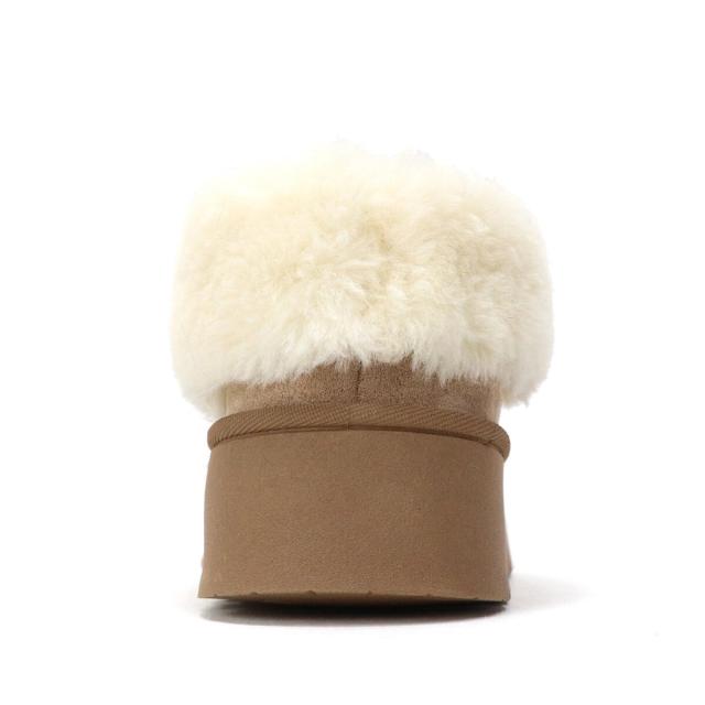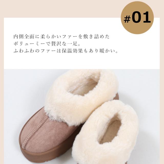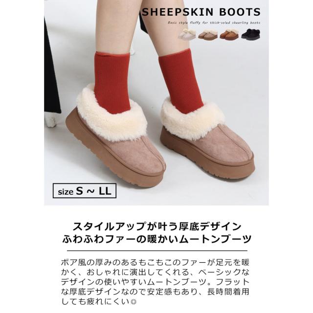 トレンドの厚底ソールでふわふわファーデザインのムートンブーツ。