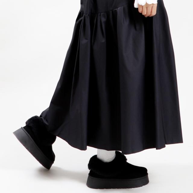 ・ボリューム感のある厚底はフラットソールで歩きやすく、スタイルアップ効果も。