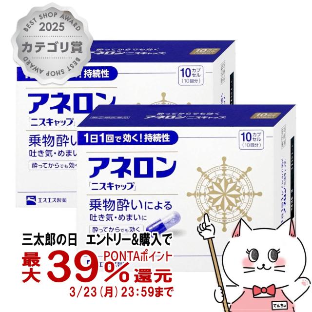 【三太郎の日 ポイント39%還元】【指定第2類医薬品】[セット]アネロン「ニスキャップ」 10カプセル×2個[エスエス製薬][乗り物酔い薬][送料無料](6055608-set1)