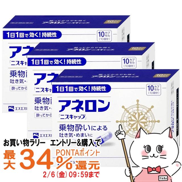【お買い物ラリー 最大34%還元】【指定第2類医薬品】[セット]アネロン「ニスキャップ」 10カプセル×3個[エスエス製薬][乗り物酔い薬][送料無料](6055608-set2)