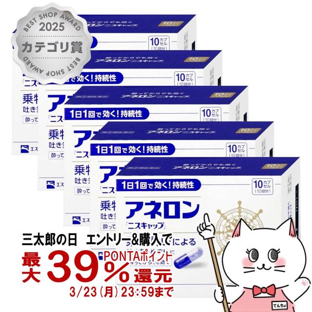 【受賞記念 最大550円オフクーポン】【指定第2類医薬品】【楽天ランキング1位】[セット]アネロン「ニスキャップ」 10カプセル×5個[エスエス製薬][乗り物酔い薬][送料無料](6055608-set3)