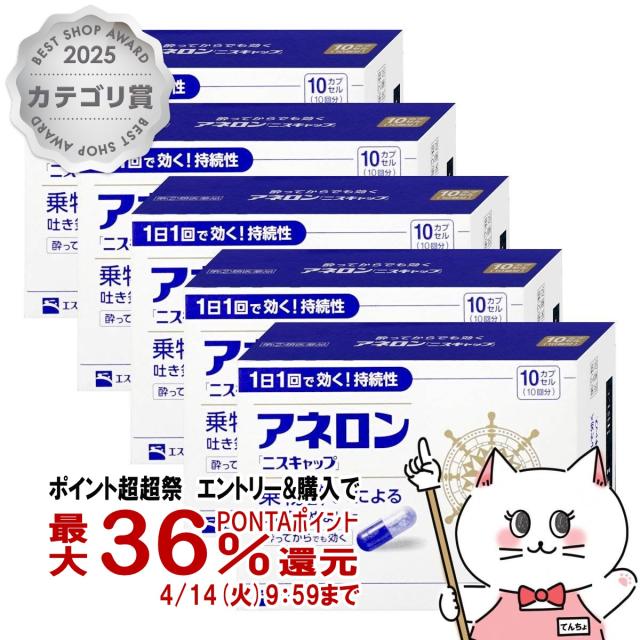 【超超祭 最大36%還元】【指定第2類医薬品】【楽天ランキング1位】[セット]アネロン「ニスキャップ」 10カプセル×5個[エスエス製薬][乗り物酔い薬][送料無料](6055608-set3)