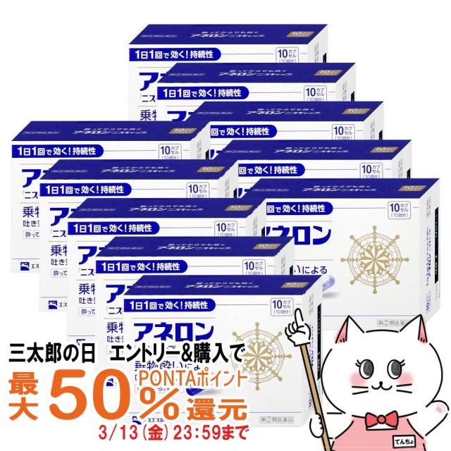 【三太郎の日 最大50%還元】【指定第2類医薬品】【楽天ランキング1位】[セット]アネロン「ニスキャップ」 10カプセル×10個[エスエス製薬][乗り物酔い薬][送料無料](6055608-set4)