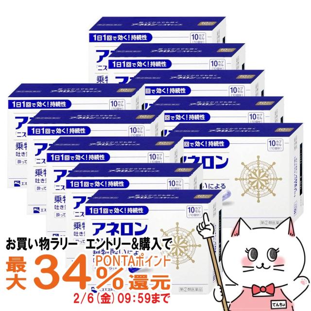 【お買い物ラリー 最大34%還元】【指定第2類医薬品】[セット]アネロン「ニスキャップ」 10カプセル×10個[エスエス製薬][乗り物酔い薬][送料無料](6055608-set4)