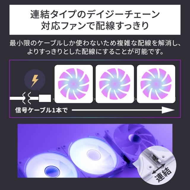 ケースファン ARGB LED内蔵 ケーブルレスで直接連結