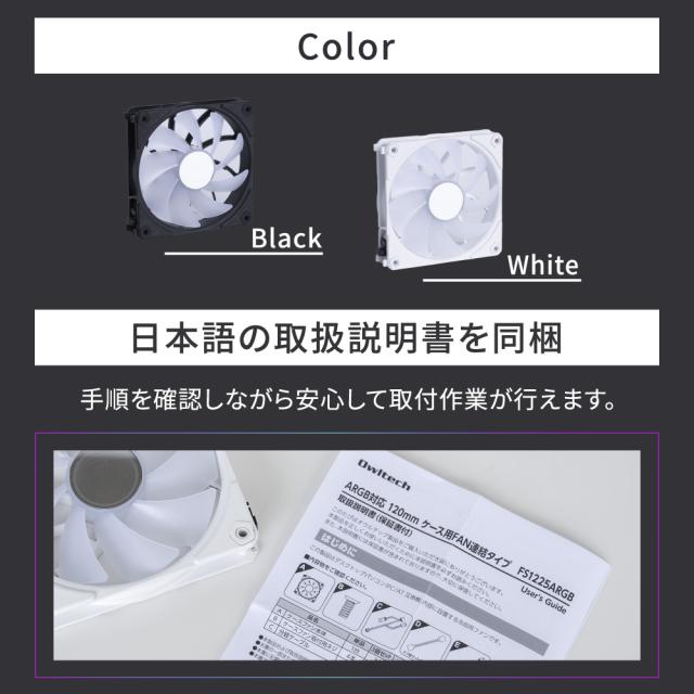 連結 デイジーチェーン 配線スッキリ PWM 静音 冷却 アドレサブルRGB LED コントローラー付属 振動吸収 振動緩和 保証 交換 ゲーミングPC ASUS Aura Sync GIGABYTE RGB Fusion ASRock Polychrome Sync MSI Mystic Light Sync 自作 PC ファン owltech オウルテック おうるてっく
