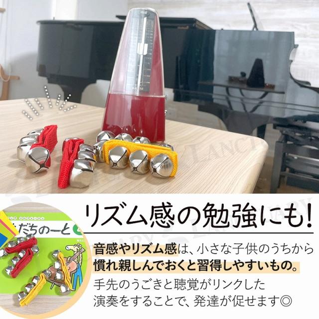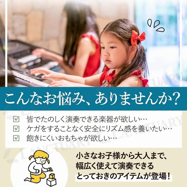 | 商品の説明 | 幅広い年代に使える楽しいリングベルセット 簡単な動作で音が出る、楽しく遊べるリングベルが登場! 腕や手に巻くだけで、振ったり動いたりの動作が音となって楽しめます♪ 小さなお子様にも、楽しく遊べる演奏会に◎ 遊びながらトレーニングも! 「まだ、難しい演奏はできない…」 そんな年齢の小さなお子様にも、リングベルなら楽しく参加可能! 扱いやすい動作で、しっかりした音色が演奏できます。 直感操作で、ラクラク演奏! お子様の興味を引く、鮮やかでかわいいリングベル。 タイミングよく手を動かしたり無作為に踊っても、 調和のとれた音が楽しめます。 音感やリズム感は、小さな子供のうちから慣れ親しんでおくと習得しやすいもの。 手先のうごきと聴覚がリンクした演奏をすることで、発達が促せます◎ 握るタイプだと、うっかり手から滑ってテレビを割ったり顔に当たったり…。 そんな悲劇を防げる、優秀なマジックテープ式。 |