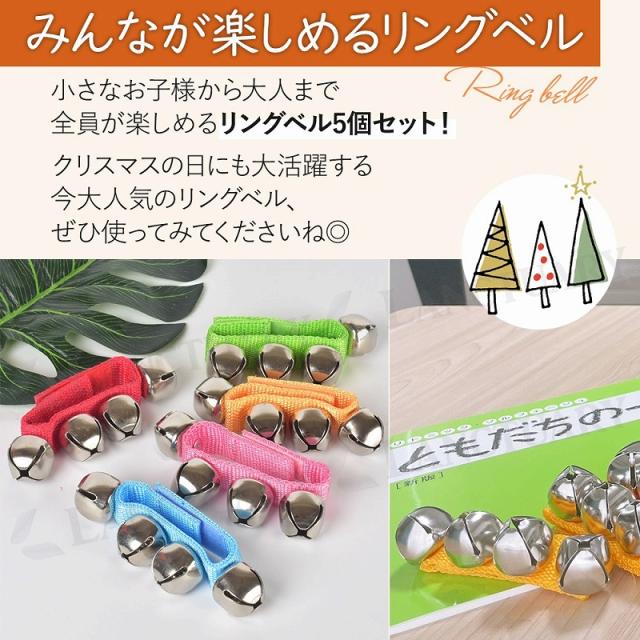 リングベル 鈴 楽器 ハンドベル クリスマス 音楽 5個セット マジックテープ 簡単 子ども クリスマス 演奏 発表会 パーティ 人気 おすすめ 演奏会 知育 リズム agesugi_sog