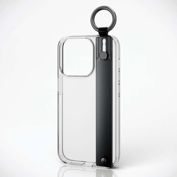 ■側面には弾力性のあるTPU素材を、背面には強じんで透明度の高いポリカーボネート素材を使用しています。手を通せるハンドバンドを装着した、スリムなスタイルのハイブリッドケースです。