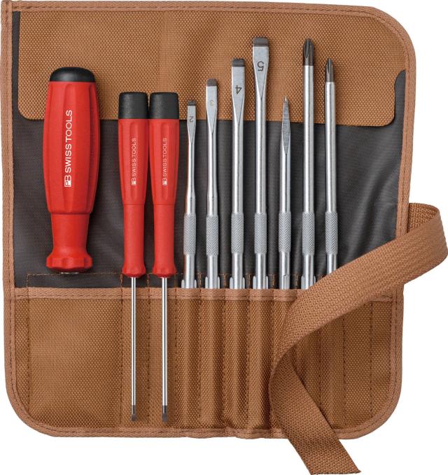 PBスイスツールズ ロールアップケース付差替式ドライバーセット9本組 ブラウン PB 8218.TO返品種別B