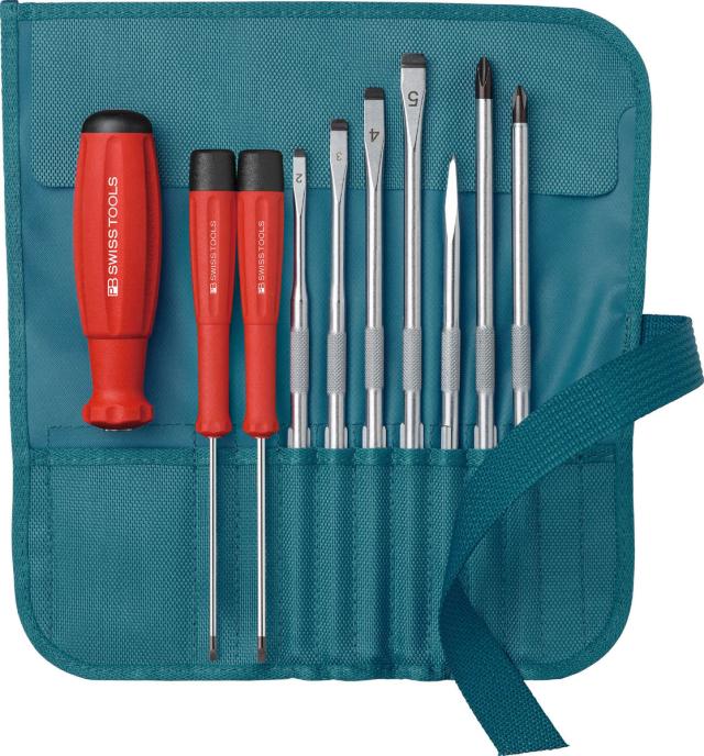 PBスイスツールズ ロールアップケース付差替式ドライバーセット9本組 ペトロール PB 8218.PE返品種別B