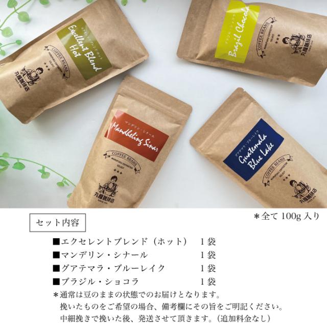 丸福珈琲店 御歳暮 クリスマス 贈答 ギフト 銘柄4種 飲み比べ コーヒー豆セット (400g / 100g×4袋) 焙煎豆 お取り寄せ